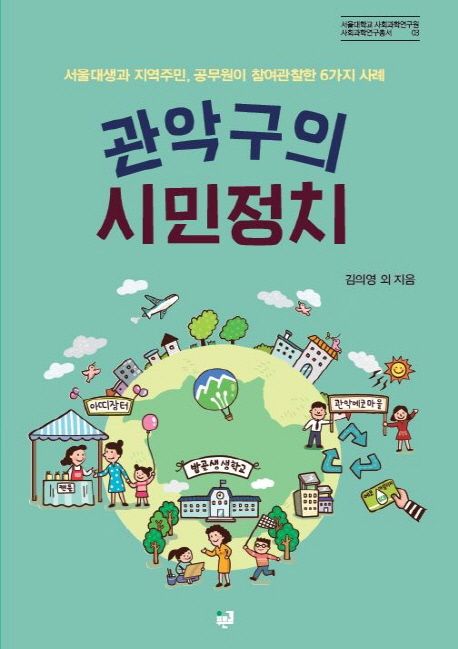 소개 학생, 지역주민, 공무원 세 주체가 함께 참여관찰한 관악구의 시민정치 사례 시민이 정치의 중요한 행위자로 등장하였다. 지난 2016년 열렸던 시민들의 촛불집회가 이를 웅변한다. 하지만 시민정치가 이렇게 거창한 것만을 의미하는 것은 아니다. 시민이 주체가 되는 시민정치는 동네 안에도 있다. 이 책의 대표 저자인 김의영 교수는 이러한 지역 수준의 새로운 시민정치 현상에 주목하여 지난 3년 동안 동네 안의 시민정치, 동네 안의 시민경제, 관악구의 시민정치, 시흥시의 시민경제를 주제로 프로젝트를 실시하였다. 이와 같은 일련의 수업 프로젝트는 지역기반학습(community based learning), 학생들의 참여관찰 및 사례연구, 정책적·실천적 대안 제시로 이루어진 새로운 시민정치 교육이자 연구이자 실천이다. 『관악구의 시민정치: 서울대생과 지역주민, 공무원이 참여관찰한 6가지 사례』는 이 프로젝트의 하나인 ‘관악구 시민정치’의 결과물이다. 구체적으로 말하면, 이 책은 2016년 2학기 서울대학교 정치외교학부 정치전공 과목인 ‘시민정치론’을 수강한 33명의 학부생과 4명의 대학원생 조교, 서울대학교 정치연구소의 미우라 히로키 박사 그리고 관악구의 여러 주민, 공무원이 함께 관악구의 시민정치를 연구한 성과이다. 2016년 2학기 ‘시민정치론’은 대학의 지역사회 공헌의 취지를 살리기 위해 서울대학교가 위치한 관악구의 시민정치에 초점을 맞추어 수업을 진행하였다. 관악구에서 15년 이상 거주한 지역주민활동가들의 조언을 참고하여 환경, 주민참여예산제, 의정감시, 사회적기업, 도시재생, 교육의 6가지 이슈를 선정했고, 학생들은 이슈별로 팀을 구성한 후 철저한 연구·분석에 기초하여 정책적·실천적 대안을 제시하고자 했다. 특히나 이번 책에서는 전작인 『동네 안의 시민정치』, 『동네 안의 시민경제』와 다르게 지역활동가와 공무원까지 참여하여 쓴 논평들을 학생들이 연구·발표한 각 장 뒤에 실었다. 주민활동가들은 앞서 학생들이 쓴 관악구의 시민정치 사례에 대해 의견을 제시하거나, 관악구에 사업을 제안하는 등 지역주민의 입장에서 시민정치를 살펴보았다. 관악구 공무원들은 학생들이 쓴 글을 분석하며 공감하기도 하고 학생들의 제안을 받아들여 검토하겠다는 의견을 밝히기도 하였다. 또한 관의 입장에서 학생들이 분석한 내용을 반박하기도 하였다. 이렇듯 이번 책에서는 주민활동가와 공무원이 학생들과 함께 연구하고 글은 쓰는 등 민관학의 협력이 이루어졌다는 점에서 의미가 깊다. 『관악구의 시민정치』의 전작인 『동네 안의 시민정치』와 『동네 안의 시민경제』에서는 여러 지역의 시민정치를 다루었기 때문에 다소 한 지역을 깊이 있게 살피지 못한다는 한계가 있었다. 하지만 이번 책은 관악구만을 다룸으로써 이를 보완하였다. 이와 더불어 이 책은 1개 자치구의 시민정치를 심층적으로 분석한 최초의 정치학 저서로 독보적이라 할 수 있다.